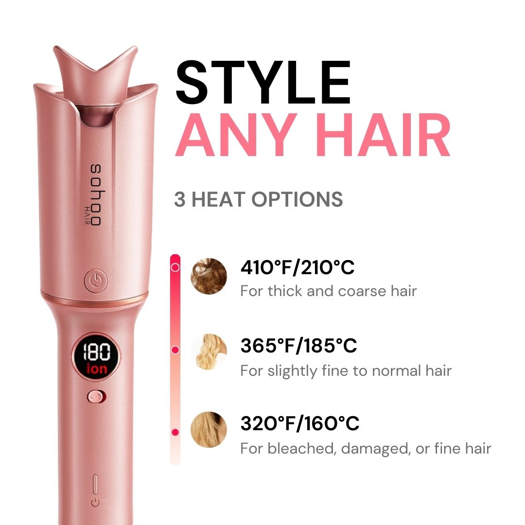 The Sohoo Curler Pro is designed with ease of use and safety in mind. Thanks to its tangle-free technology and temperature adjustment settings, you are sure to achieve professional curls without heat damage or burns. Our ceramic tongs give you silky waves and curls without frizz that last!